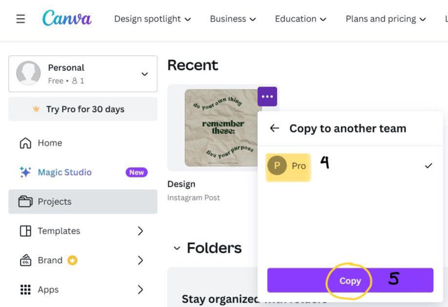 With the provided step, you'll be able to transfer your design to Canva Pro.